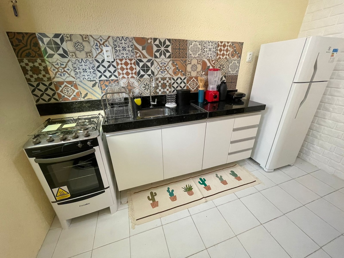 Elegante casa, con obras de arte, en una villa tranquila y segura a 15 minutos de la playa de Iracema. Es una zona con 130 m², con 2 baños, 2 dormitorios (1 gran altillo con cama doble, baño y armario; y 1 dormitorio), sala de estar, cocina equipada y terraza, para un máximo de 4 personas. Vila Nanan está en una calle sin salida, con puerta, cámaras y vigilancia. (hay descuentos para estancias más largas). Espacio privado completo. No se permiten fiestas ni eventos.
