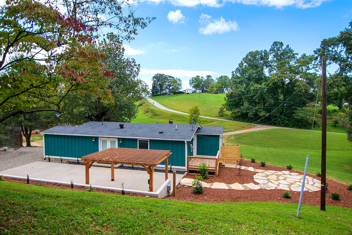 Casa rural de diseño vintage «nueva». A solo 15 minutos de los límites de la ciudad de Asheville. Disfruta de las vistas pastorales a la montaña desde la terraza, relájate en el muelle con la caña de pescar en la mano o haz smores en la hoguera. Nuestra adorable casa de campo tiene 2 dormitorios y 2 baños, uno en cada nivel de la casa, mucha privacidad. Durante los meses de otoño e invierno, acércate a la chimenea de gas en el nivel principal o date un agradable baño relajante en la bañera doble con patas. ¡Relájate! ¡Relájate! ¡Relájate!