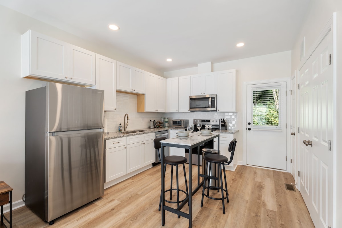 ¡Te damos la bienvenida a tu acogedora base en el centro de Fuquay-Varina! Esta luminosa casa de 3 dormitorios y 2 baños está a pocos pasos de cervecerías, restaurantes y tiendas, perfecta para viajes de fin de semana o estancias prolongadas. Disfruta de un patio trasero cercado para perros, una cocina estilo cafetería con barra de café y un espacio de estar relajante. La suite tamaño king añade comodidad adicional, mientras que la tranquila ubicación en el callejón sin salida ofrece comodidad y tranquilidad. Llegada autónoma y aparcamiento gratuito incluidos.