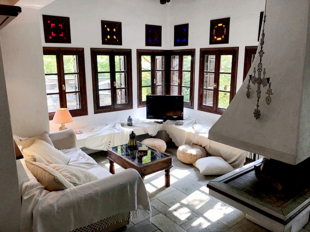 Al pie de Pelión, donde la montaña de los Centauros se encuentra con el azul del Golfo Pagasético, esta casa de piedra ofrece una experiencia de vida que equilibra entre autenticidad y lujo. Rodeada de un olivar centenario, la casa irradia calidez, comodidad y alta estética. Aquí, la tranquilidad del paisaje se encuentra con la calidad de una verdadera escapada, donde cada detalle está diseñado para ofrecer relajación, armonía y una profunda sensación de bienestar.