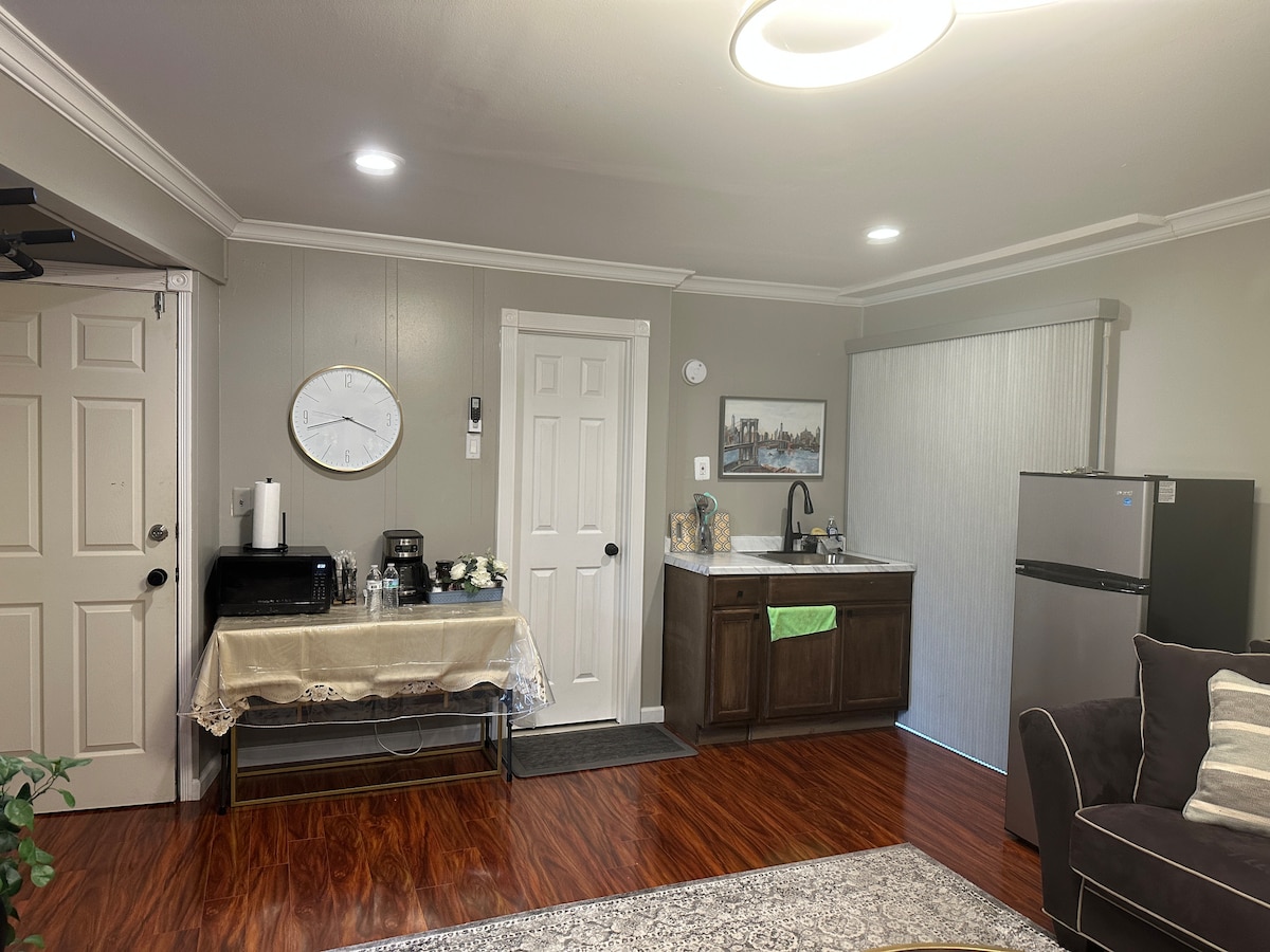 ¡Bienvenido a nuestra acogedora suite de invitados ubicada a poca distancia a pie de los transbordadores de Fire Island y convenientemente cerca de los servicios locales! Esta unidad privada, unida a la parte principal de nuestro hogar, ofrece un cómodo refugio para tu estancia. Pasa por tu propia entrada privada a una acogedora sala de estar, donde podrás relajarte después de un día de exploración. El dormitorio cuenta con una cama tamaño queen, que proporciona una noche de sueño reparador, y un baño contiguo que ofrece comodidad y privacidad.