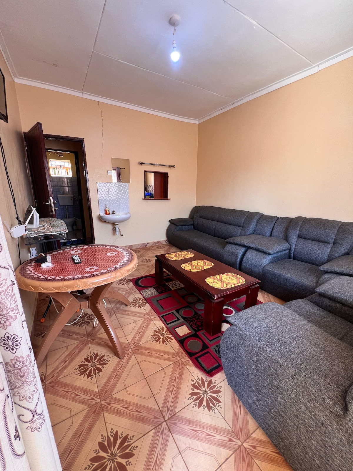 Un departamento de dos habitaciones en un lugar muy sereno, limpio y de fácil acceso. La unidad se encuentra frente a Mulembe International Hotel, a 1 minuto en coche de la carretera principal de Busia. Hay espacio de estacionamiento gratuito, acceso a agua limpia, sala de estar segura y espaciosa con wifi muy estable y Netflix. Puedes cocinar a tu conveniencia en nuestra cocina totalmente amueblada. Fácil acceso a un supermercado, centro comercial Khetias, restaurante y gimnasio. Disponible0716517420/0705865899.