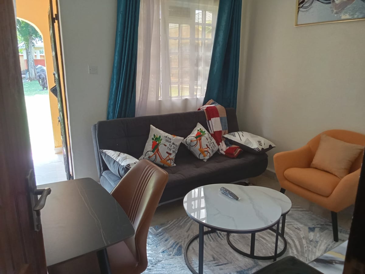 Come unwind in this charming one-bedroom cottage nestled within a serene farm in Busia, Kenya. Offering a unique blend of rural tranquility and modern comfort, this little haven is perfect for those seeking a peaceful unique space. Cozy and thoughtfully furnished, fully equipped kitchenette. Wake up to the sounds of nature and experience the tranquility of farm life. This cottage offers more than just accommodation; its an experience.