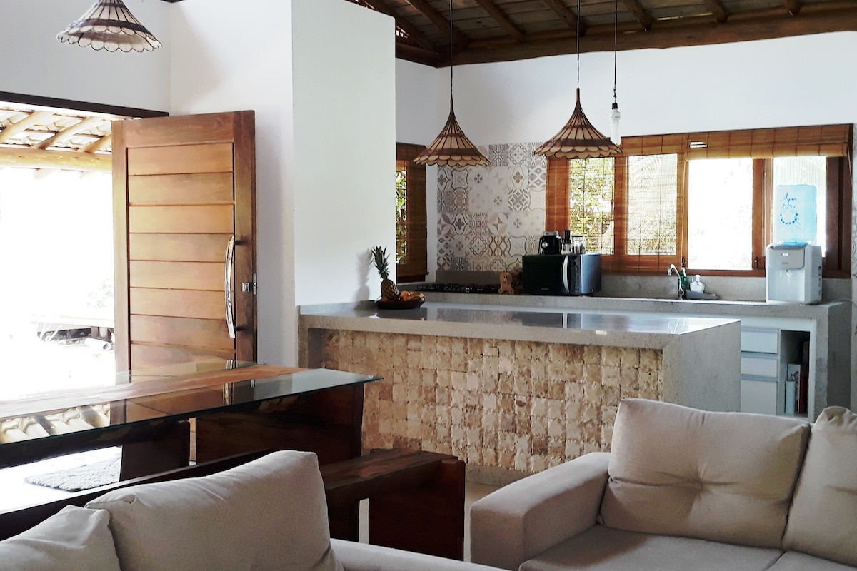Disfrute de una experiencia acogedora en Casa Beija-Flor. A pocos pasos del hermoso mar de la Praia de Algodões y sus piscinas naturales. La casa tiene dos suites equipadas con aire acondicionado, ventilador, cama queen, mesa de trabajo y un estilo rústico bahiano que encanta. El balcón conecta la casa con el exterior, donde encontrarás mucha vegetación y sombra para soportar el sol de Bahía. ¡Ven a disfrutar del paraíso aquí! Nota: para el paquete de Navidad/Año Nuevo, póngase en contacto con nosotros por mensaje.