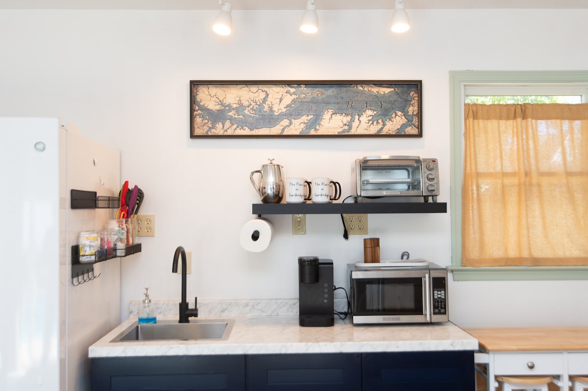 Esta encantadora casa de huéspedes está ubicada en el distrito histórico de Cambridge, a 3 cuadras del parque frente al mar Great Marsh/Gerry Boyle. Este acogedor espacio incluye una cocina completa con platos, sala de estar con sofá reclinable, nueva cama Bedstory de firmeza media separada por un armario antiguo, así como un baño grande. Tendrás una zona de estacionamiento privado y una entrada independiente a través de un patio privado. A menos de 1 milla de la histórica Cambridge. Cerca del inicio de las carreras anuales y las actividades frente al mar.