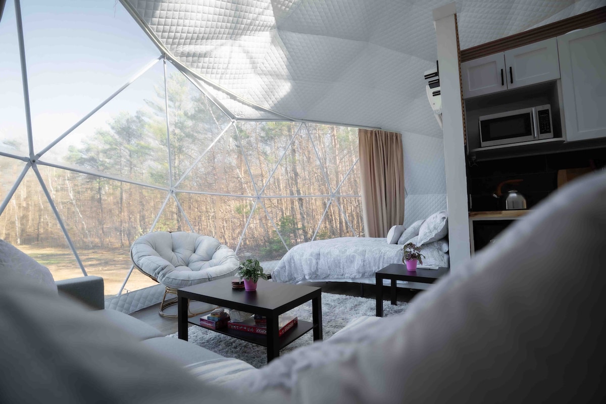 Ubicado a una hora de Toronto, Birchwood es una experiencia de camping de lujo para dos. Sumergido en un bosque privado en la isla de Scugog, nuestra cúpula geodésica permite una escapada acogedora y relajante. Disfruta del paisaje circundante y échale un vistazo a las tiendas y restaurantes locales en la calle principal de Port Perry. Nuestro geodomo está diseñado para 2 huéspedes, sin embargo, un grupo de 3 adultos es bienvenido. Los huéspedes adicionales deben ser mayores de 12años y agregarse a tu reserva al momento de hacer la reserva. No se permiten mascotas.