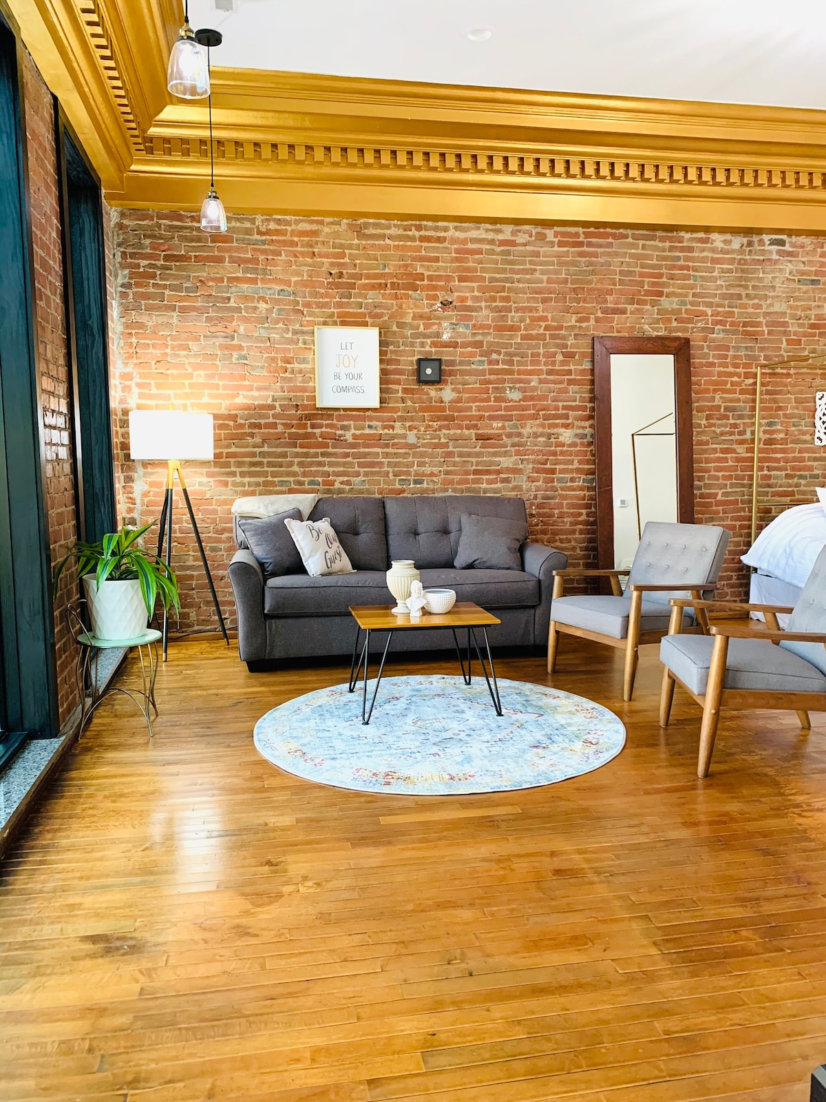 No se pasó por alto ningún detalle en el diseño de estos lofts de Airbnb construidos especialmente con vistas al centro histórico de Canton. La unidad 1 es una unidad de 1 dormitorio que puede alojar hasta 4 personas (cama tamaño queen y sofá cama extraíble de tamaño completo). Los suelos de baldosas originales en la entrada del edificio y las paredes de ladrillo visto dentro del dormitorio encajan bien con los conductos a la vista, la cocina totalmente equipada, los modernos «deslizadores de puerta de granero» y los accesorios y suelos modernos. La propiedad es propiedad del agente.