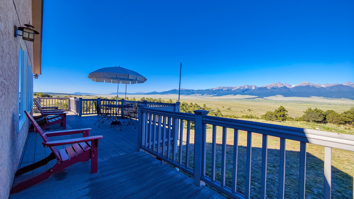 Escápate y relájate en esta impresionante cabaña de rancho moderno en la base de tres icónicos 14ers, rodeado de vistas panorámicas a la montaña. En el interior, disfruta de muebles de primer nivel, techos abovedados, una acogedora chimenea y un porche cubierto. Camina hasta los senderos para practicar senderismo, raquetas de nieve y paseos a caballo. Sal a ver y acariciar ganado de las tierras altas, caballos y burros en miniatura. Pesca en lagos alpinos, observa la vida silvestre y contempla las estrellas bajo cielos oscuros brillantes en la comunidad Dark Sky de Westcliffe.