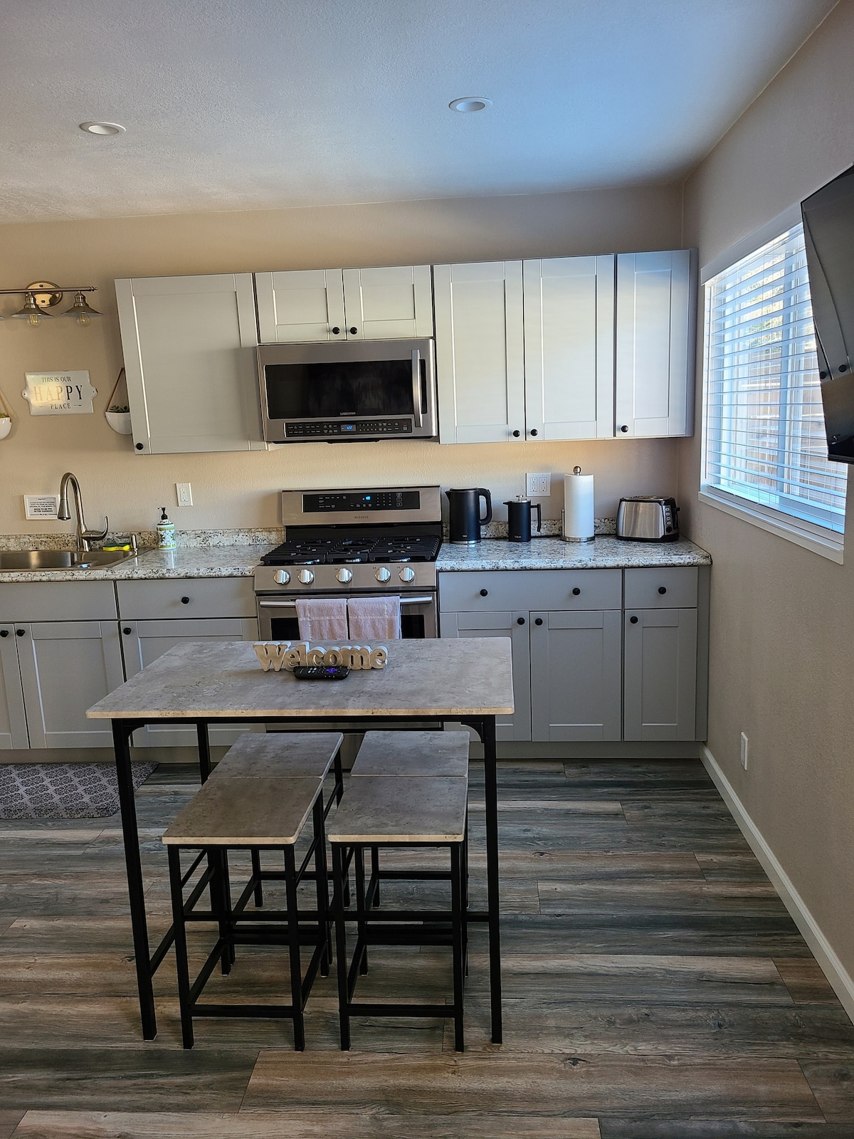 Disfruta de este elegante y moderno estudio de 500 pies cuadrados arriba, sobre el garaje. Este encantador espacio cuenta con todos los servicios necesarios para pasar el fin de semana o relajarte después de un día de exploración. El centro comercial y los restaurantes de Henderson están a solo una milla y el encantador casco antiguo está a 1,5 millas. Está a 15 minutos en coche de Cal Poly Humboldt por la 101, y no muy lejos de hermosas playas y de las majestuosas secuoyas. Ideal para parejas, familias pequeñas y viajeros de negocios.