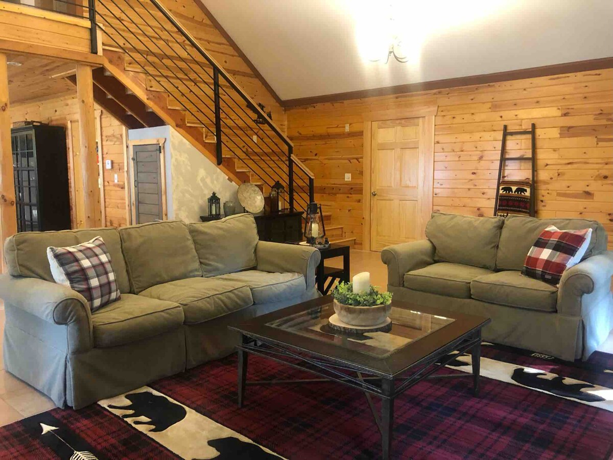 Cabaña de troncos frente al lago con loft, kayaks, canoa y vehículo eléctrico