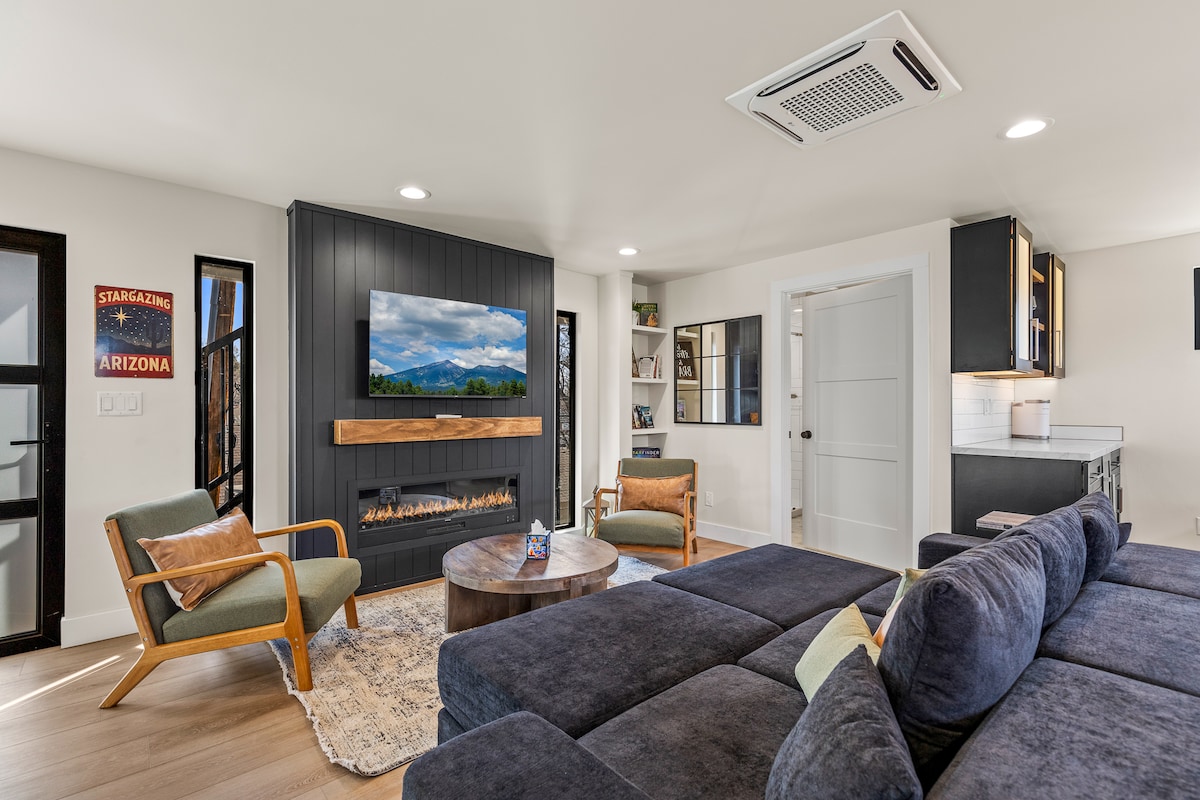 ¡Te damos la bienvenida al Golden Antler! Relájate junto al fuego o bajo las estrellas con vistas a los picos de San Francisco. ¡O detente en el camino al Gran Cañón! Nuestra casa personalizada de 2 camas/1 baño está cerca de rutas de senderismo/ciclismo, todas a pocos minutos de la casa. Ubicado a 30 minutos de Sedona, a 1 hora del Gran Cañón y a 5 minutos del Monumento Nacional Sunset Crater/Waputki. Un espacio tranquilo y moderno que ofrece tranquilidad y estilo. Perfecto para parejas, familias pequeñas o grupos de 4 + un bebé. ¡Disfruta de una estadía hermosa y relajante!