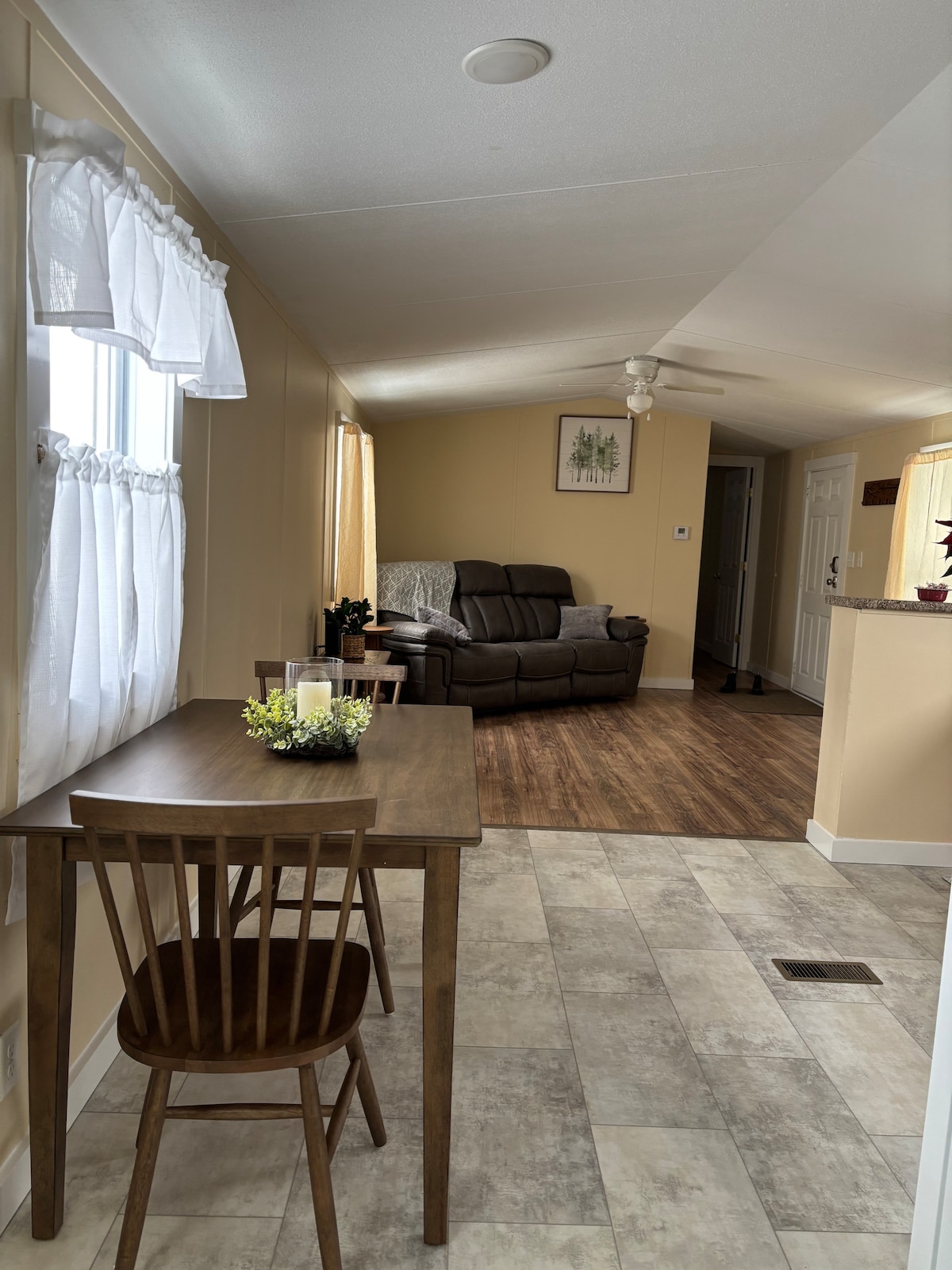 La habitación tiene una entrada independiente ubicada junto a un porche trasero cubierto con una mesa pequeña y sillas para uso en verano. Hay aire caliente y frío ajustable desde la bomba de calor de fuente de aire montada en la pared. La pequeña cocina es conveniente para café o té o una comida ligera (horno tostador, placa de inducción individual “caliente”, calentador de agua) Vivimos en un edificio histórico. Nuestro vecindario está muy cerca de la ruta 100. El pueblo de Waterbury y Stowe también están cerca con esquí, senderismo y ciclismo.