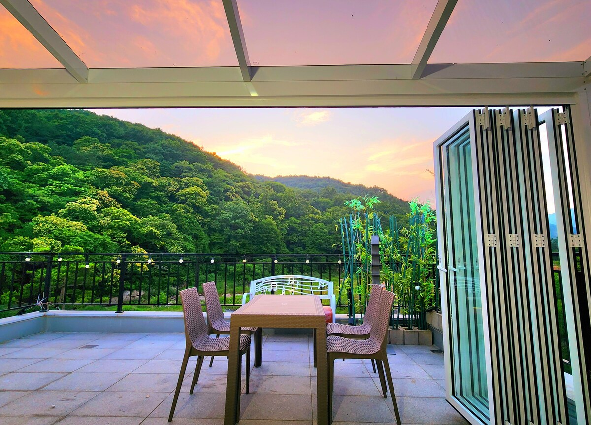 Haerangnae (No. 201-Puerta plegable de terraza, baño privado al aire libre, habitación Netflix, proyector, sonido de arroyo ASMR)