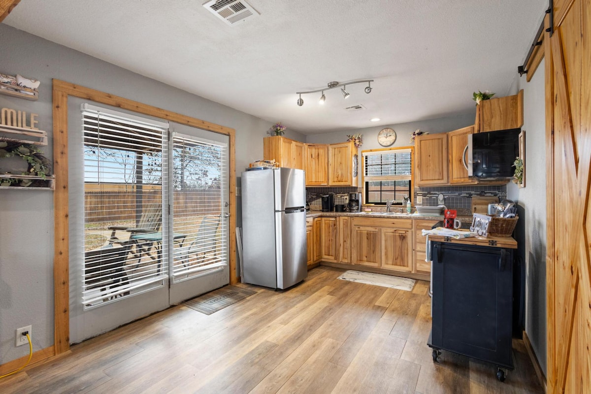 Desconéctate, relájate y disfruta de la naturaleza en este encantador barndo de 2 dormitorios escondido en 21 acres en Whitesboro, TX. Con una cocina completa, una amplia sala de estar, una acogedora chimenea privada y un entorno pintoresco, que incluye robles, un estanque, senderos, paseos a caballo y puentes, este refugio es perfecto para parejas, familias o amigos que buscan relajarse y recargar energías. Ya sea que estés buscando una escapada de fin de semana, un retiro creativo o simplemente un lugar tranquilo para relajarte, "Falling Leaf Ranch" tiene todo lo que necesitas.