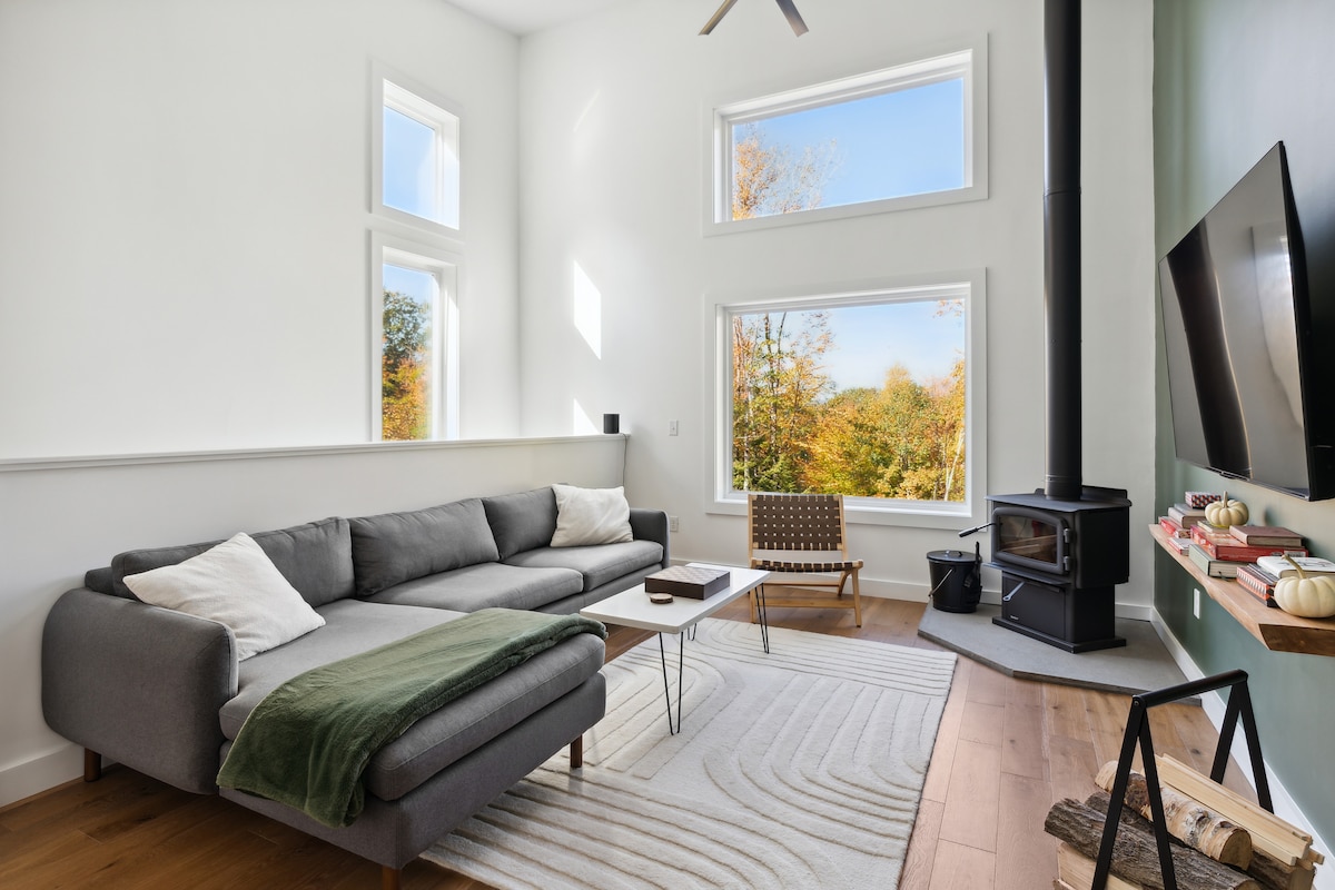 Casa de huéspedes de nueva construcción sobre el garaje del propietario con increíbles amaneceres y excelentes vistas. La propiedad se encuentra en 36 acres, el propietario vive en el sitio en una casa separada con sus 3 perros, 1 gato excepcionalmente perezoso y 4 gallinas salvajes (¡todos pueden venir a visitarte!). Los terrenos tienen manzanos antiguos, un montón de jardines perennes con más en progreso, bayas y un huerto orgánico que nos encantaría compartir si lo deseas. ¡No dudes en preguntarnos cualquier inquietud o dudas que tengas! ¡Esperamos conocerte pronto!