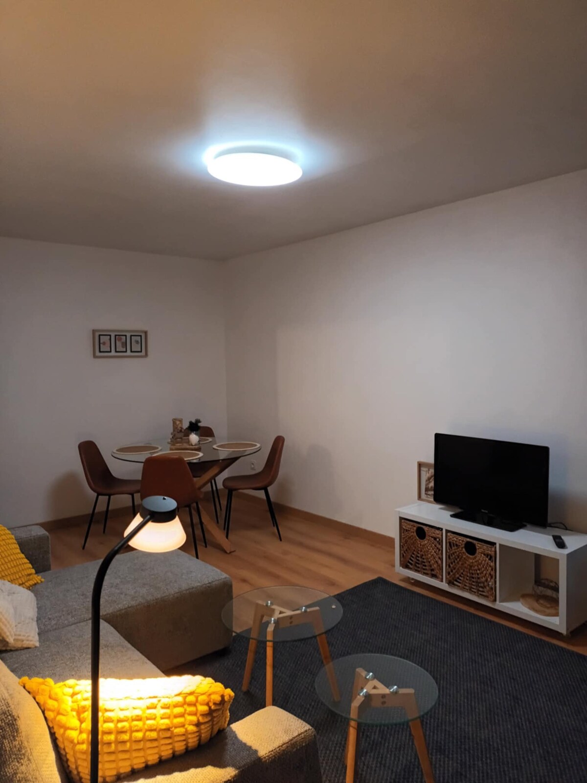 🌿 Noche bohemia y bienestar 🌿 Ambiente suave y cálido, ideal en pareja o en solitario: cama de 160x200, TV orientable visible desde el spa, sofá acogedor, cocina equipada (horno, placas, hervidor de agua, lavadora), baño moderno, café y té disponibles. 📍 Alojamiento tranquilo y accesible.