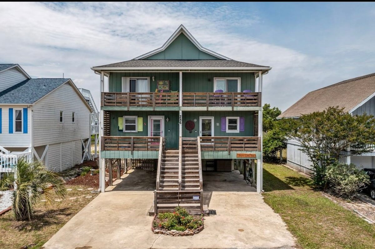 Casa grande de 2400 pies cuadrados cómodamente amueblada con increíbles vistas al canal y al pantano, muelle comunitario para cangrejos/aves y un rápido paseo de 2-3 minutos a la playa. ¡No es necesario pagar el estacionamiento en el océano! Ropa de cama, artículos de tocador, artículos básicos de despensa ycafé incluidos. Cocina bien surtida, ascensor, 3 áreas cubiertas al aire libre y televisores Roku en todas las habitaciones. Todos los colchones tienen cubrecolchones extraíbles, por lo que se pueden acomodar todas las preferencias de colchones. Sistema de sonido HK, juegos de arcade, estacionamiento en garaje, equipo de playa, parrilla y más