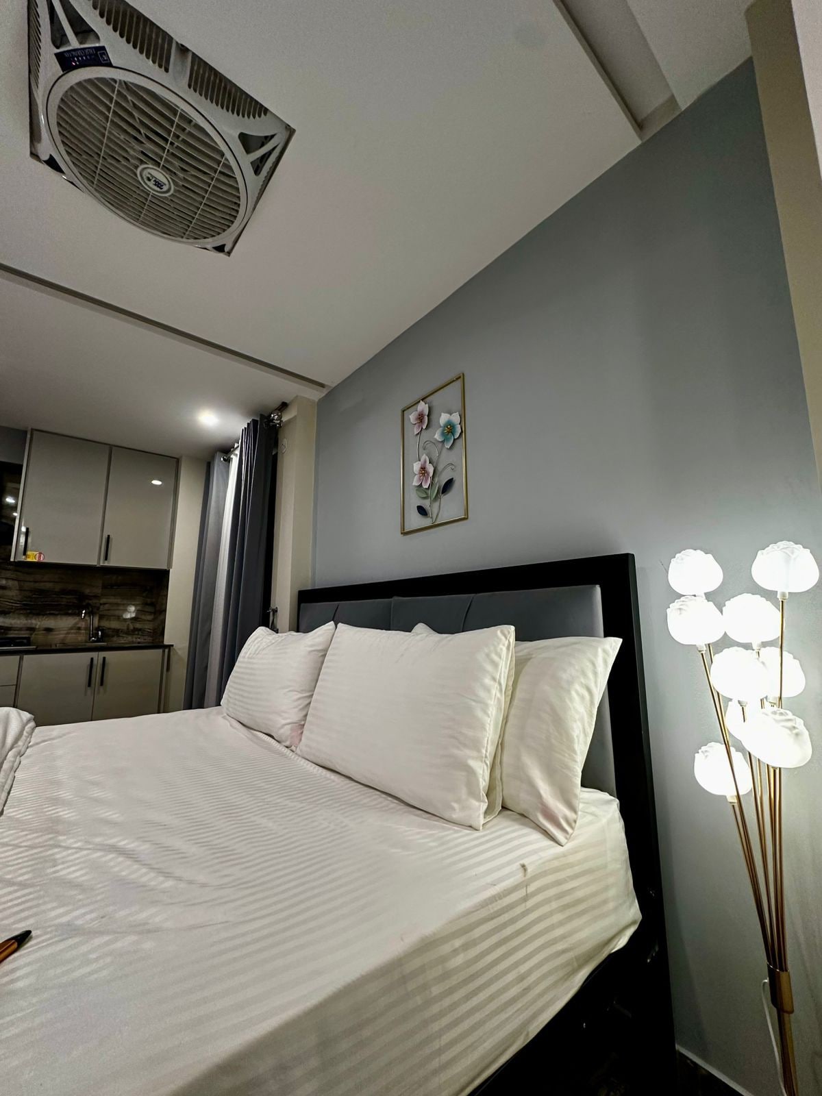 We offers a stylish one-bedroom apartment in DHA Phase 4, Lahore, with easy access to local attractions. The apartment features a cozy kingsize bed, a fully equipped kitchen, and a spacious living area. Enjoy a private terrace. Additional amenities include Wi-Fi, air conditioning, microwave oven and a washing machine. Guests are required to present valid ID upon arrival. Please note, loud parties, indoor smoking, and unregistered guests are not allowed. Unmarried couples will not accommodate.