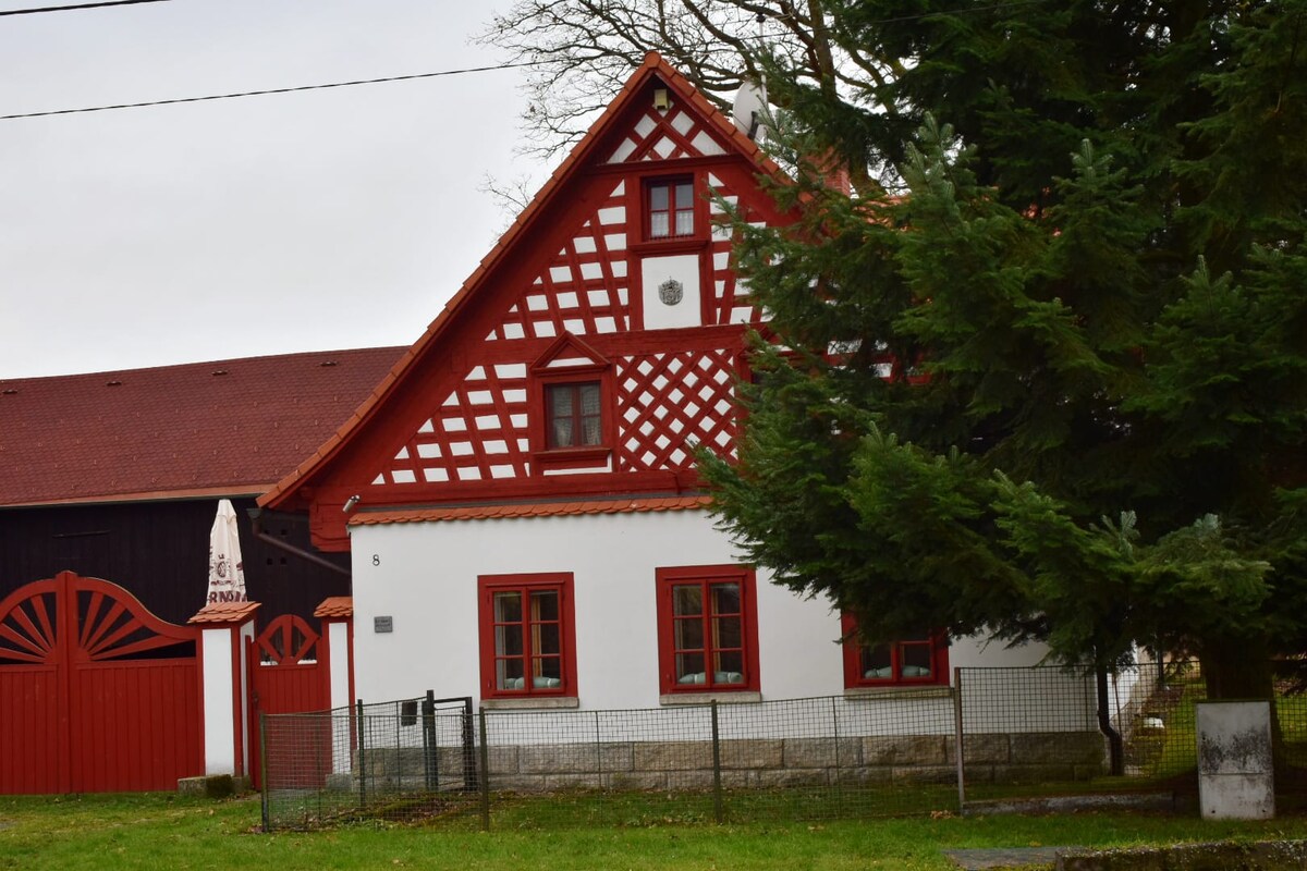La cabaña tiene una capacidad máxima de 14 personas en el tranquilo pueblo de Zhorec, cerca de Bezdruzice. El alojamiento ofrece una cocina equipada con estufa, dos baños, dos habitaciones dobles con posibilidad de una cama supletoria, una habitación familiar para cuatro personas y un loft para dormir para otras cuatro personas. El edificio incluye un amplio jardín y nuestras mascotas de granja. A poca distancia en coche de Marienbad y muchos otros lugares interesantes.