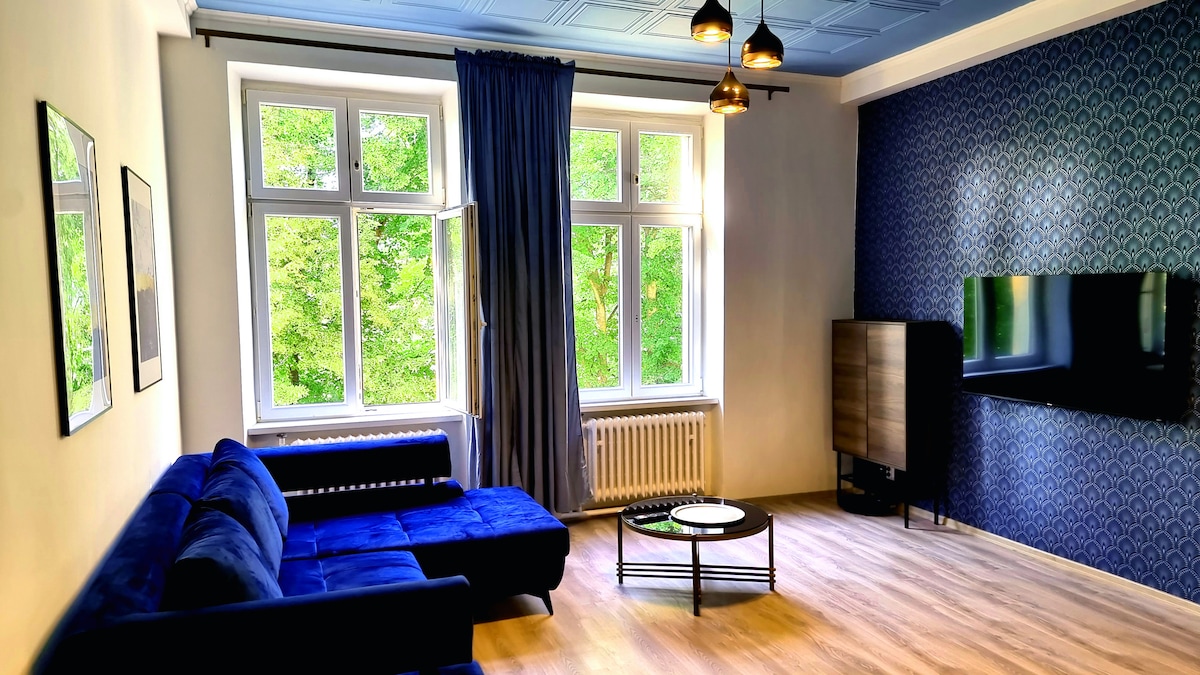 Apartamento muy luminoso y espacioso en una zona tranquila de Ústí nad Labem, cerca del parque central y del centro de la ciudad. Se trata de una planta entera de una villa histórica. Apartamento totalmente equipado, incluyendo gimnasio y futbolín. Puede alojar cómodamente a 4 personas. Hay dos lugares de trabajo y espacio para el descanso y el tiempo libre.