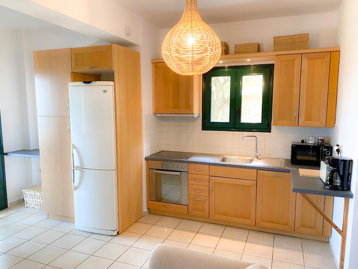 Katerina Mare en la playa de Lourdas ofrece una experiencia de alquiler única, a 5 pasos de la orilla. Disfruta de vistas impresionantes, sonidos relajantes de las olas y puestas de sol inolvidables. A solo un minuto hay restaurantes y un minimercado. Relájate en el jardín rodeado de exuberante vegetación. El acceso a la playa es cómodo a través de las escaleras cercanas. No se necesita coche, ya que el autobús local conecta con zonas populares a poca distancia a pie.