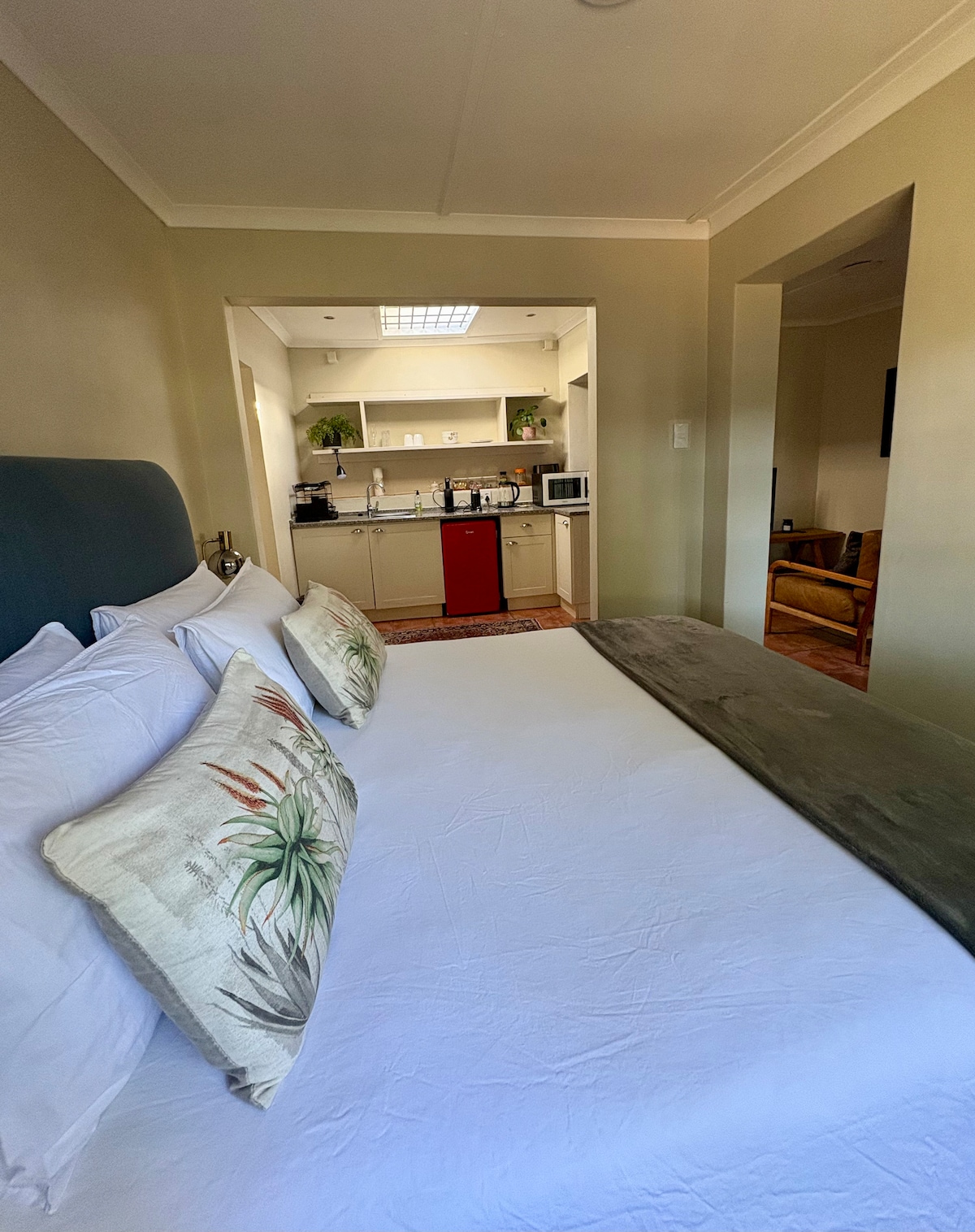 ¡Bienvenido a nuestra acogedora casa de campo, ubicada en el corazón de Grahamstown! Nuestra casa de 1 dormitorio con baño es perfecta para parejas o viajeros solitarios que quieran visitar nuestra ciudad mientras disfrutan de una estancia cómoda. Al entrar en la casa, te recibirá una sala de estar de planta abierta que incluye un sofá cama, TV de pantalla plana y espacio de trabajo. La cocina está totalmente equipada con electrodomésticos modernos que incluyen nevera, cocina de gas, microondas, lavadora, utensilios de cocina y cubiertos. Estamos deseando recibirte.