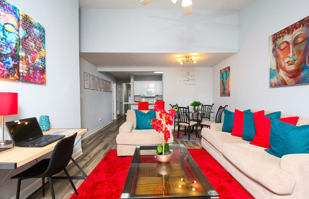 ¡Alojamiento prémium! Este condominio súper espacioso en el cuarto piso (con acceso al ascensor) está completamente abastecido y equipado con todo lo que necesitas durante tu estancia, incluidas las cortinas opacas. Amplio, acogedor, limpio y tranquilo. Situado en el corazón del centro de Augusta y el distrito médico, cerca de una serie de deliciosos restaurantes y a solo unos minutos del Augusta River Walk, James Brown Arena, Sacred Hearts, North Augusta y todos los principales hospitales que te permiten disfrutar de todo lo que Augusta, GA tiene para ofrecer.