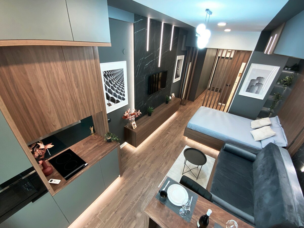 Un loft moderno, refinado y ultra céntrico en el centro histórico de Iasi, perfecto para viajeros de negocios o sofisticadas escapadas a la ciudad. Espacio dividido inteligente con área de escritorio dedicada, sala de estar luminosa y lujoso diseño minimalista. Ideal para trabajar, relajarse y explorar las ciudades, con llegada autónoma y servicios inteligentes