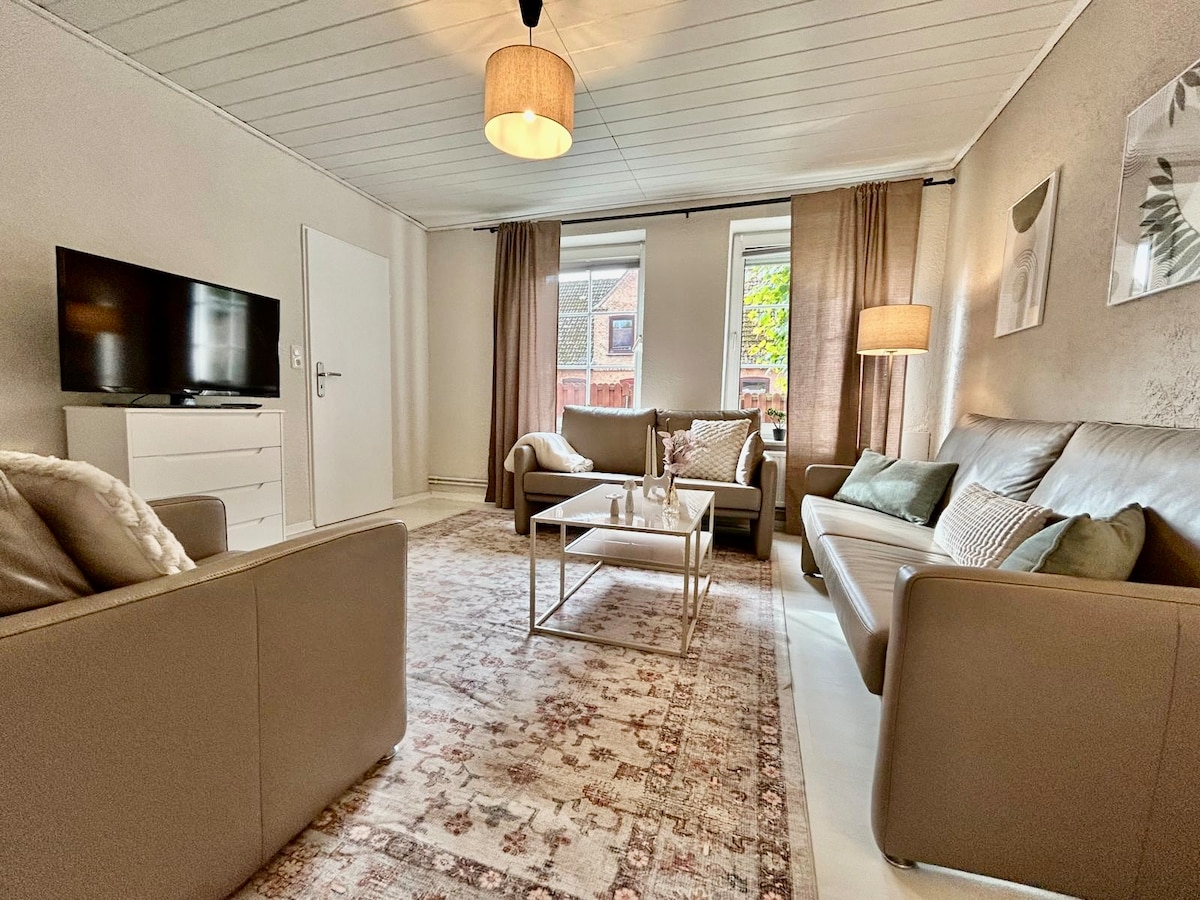 Moin! Wir bieten unsere Anliegerwohnung als Privatunterkunft zur Vermietung an. Sie hat einen eigenen Eingang, Küche, Duschbad und Wohn- / Schlafzimmer. Sie ist über eine Innentreppe mit unserem Haus verbunden. Oben ist aber eine Tür welche verschlossen ist. Die Unterkunft hat einen separaten Eingang, wir ermöglichen dir eine zeitlich flexible Schlüsselübergabe. Handtücher, Bettwäsche, WLAN, Wasserkocher, Geschirrspüler, Kamin und Terrasse vorhanden. Kostenloser Parkplatz auf dem Grundstück.