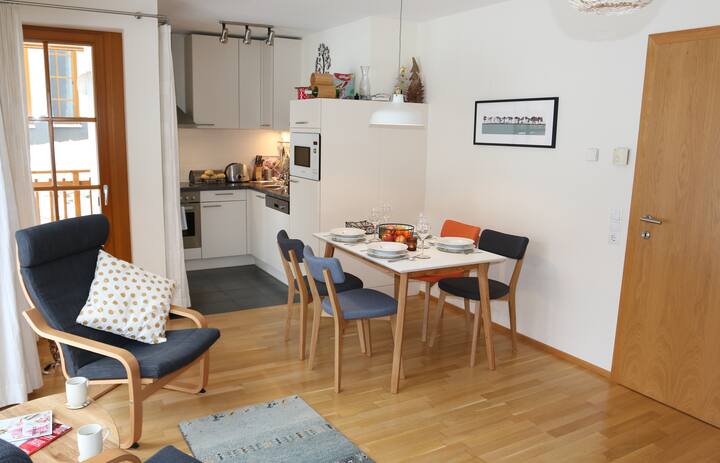 Moderno apartamento de 2 dormitorios en planta baja con acceso al SPA. La góndola y el centro del pueblo están a la vuelta