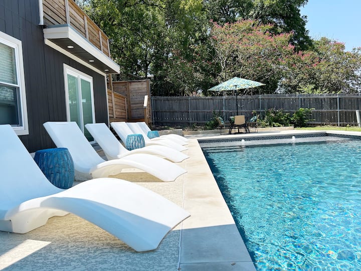 ¡Exquisito Central Austin Retreat! Sumérgete en el lujo en nuestra joya de 5 dormitorios recientemente remodelada, enclavada en el bullicioso núcleo de Austin. Cada detalle, desde acabados prémium hasta interiores seleccionados, promete una mezcla de estilo y comodidad. Ubicado a minutos de las principales atracciones, nuestro refugio es a la vez una escapada serena y el sueño de un aventurero de la ciudad. Disfruta del encanto sofisticado; reserva una experiencia inolvidable en Austin donde la elegancia moderna se encuentra con una ubicación privilegiada.