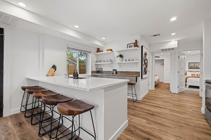 “Me encanta alquilar estas casas. Ambiente tan acogedor pero lujoso. Esta fue la primera vez que vine con un grupo de personas y cada una de ellas disfrutó de esta estadía. ¡Vengo a Austin por semana y cada vez que uno de estos alojamientos está disponible, reservo!- ★★ DORMITORIOS MELODY