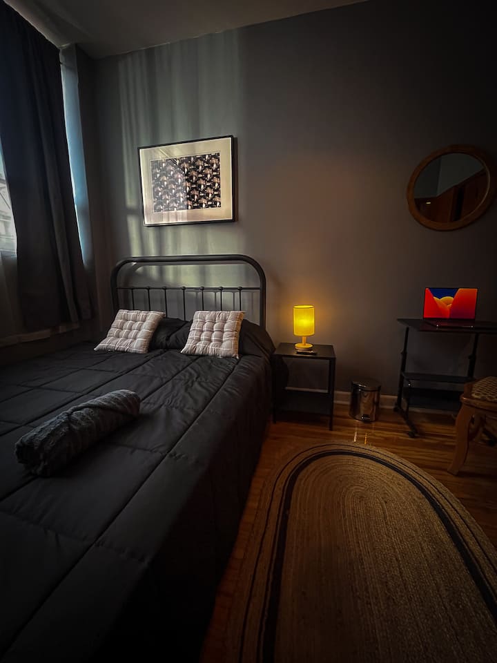 Una habitación solo para ti en un alojamiento, con acceso a áreas compartidas.