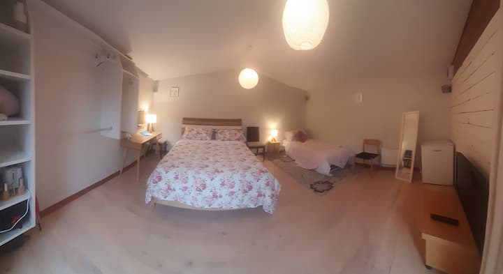 Una habitación solo para ti en un alojamiento, con acceso a áreas compartidas.