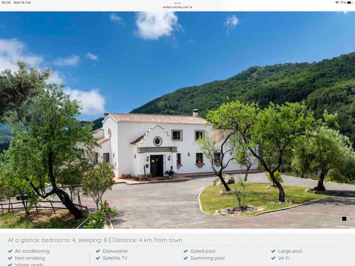 Descubre una villa de alta gama en un valle aislado cerca de Gaucín, que ofrece total privacidad, vistas impresionantes y una amplia piscina de 12x6. En el interior, una cocina gourmet con nevera americana, hornos, lavavajillas y vitrocerámica Bosch hace que cocinar sea un placer. Los dormitorios incluyen persianas automáticas para un sueño reparador, mientras que Internet y WiFi te mantienen conectado. A pocos minutos, el pueblo blanco de Gaucín te da la bienvenida con bares de tapas, restaurantes elegantes y el auténtico encanto andaluz.