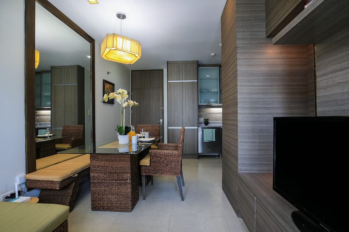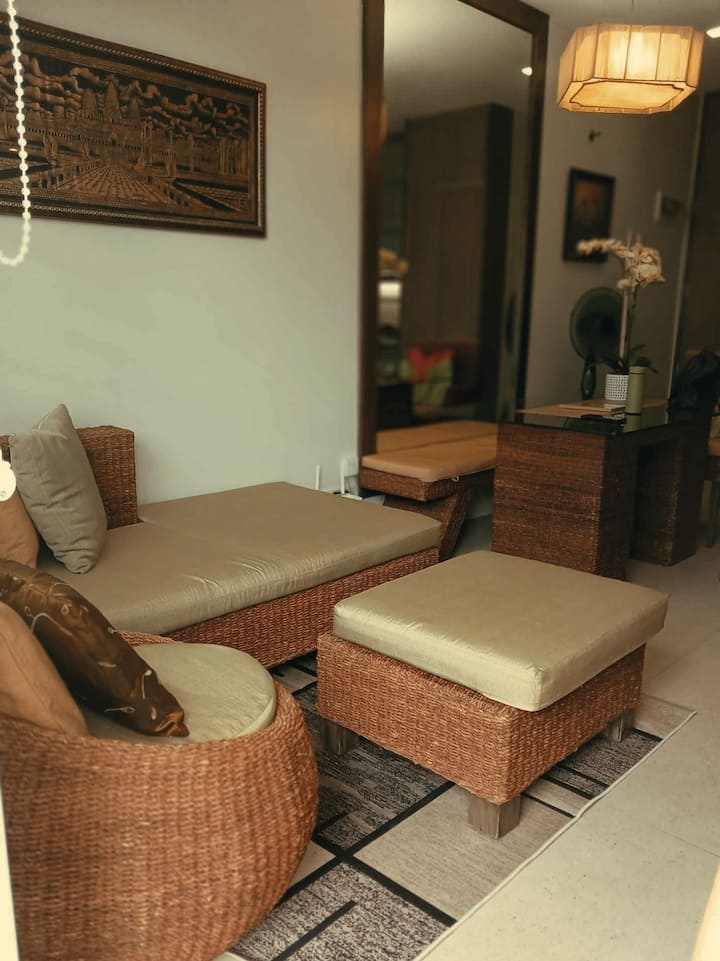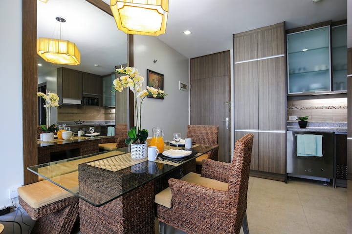 Déjate mimar en este refugio céntrico en Bonifacio Global City. A pocos minutos a pie de Bonifacio High Street, Mind Museum, Market Market, SM Aura, restaurantes, cafés y muchas más tiendas para elegir. Déjate cautivar por el estilo “Filipiniana Modern” de esta belleza. Casa equipada con electrodomésticos de acero inoxidable, cocina de inducción de 4 fuegos, horno, sistema de aire acondicionado mini split, encimeras de granito, duchas de lluvia fría y caliente, acceso a Internet y cable. Disfruta de las vistas desde el balcón y relájate.