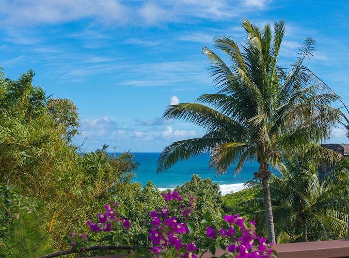 Cuando te hospedas en nuestra piscina oceánica Hale, estarás situado en Princeville, en Kauai, Hawái. Princeville ofrece una experiencia de vacaciones de ensueño y tranquilidad, ubicada en una comunidad serena. Este lugar tranquilo ofrece una escapada perfecta para aquellos que buscan relajarse y aventurarse por igual. Los huéspedes estarán a solo unos pasos del campo de golf Makai, que ofrece 18 hoyos panorámicos, algunos con excelentes vistas al mar. Para los amantes de la playa, puedes dirigirte al One Hotel y acceder a la playa de Puu Poa, o hacer una caminata (es una caminata empinada, por lo que solo aquellos que confían en sus habilidades deberían ir) a la playa Hideaways. Un rápido trayecto en auto por la autopista Kuhio conduce a la pintoresca ciudad de Hanalei, donde te esperan playas vírgenes y lugares para practicar esnórquel. Princeville también satisfará a aquellos que buscan comprar y cenar. Explora las tiendas del centro comercial Princeville y compra comestibles en Foodland. Para cenar, pase por Hideaways Pizza para disfrutar de una comida satisfactoria o saborear una experiencia gastronómica en el lujoso hotel 1 que cuenta con impresionantes vistas al mar y un restaurante de primer nivel.