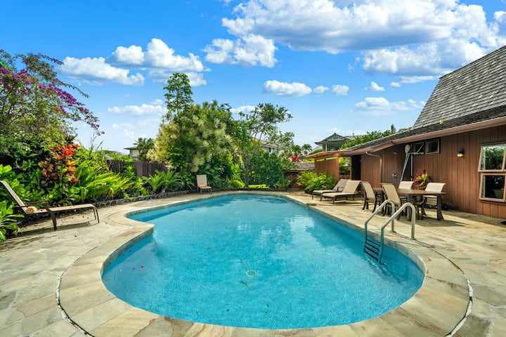 Bienvenido a Ocean Pool Hale, una acogedora escapada hawaiana en el corazón de la exuberante Kauai. Esta casa de tres dormitorios y dos baños de un solo nivel está ubicada en la tranquila Princeville, una comunidad conocida por sus magníficos paisajes y golf de clase mundial. Este encantador alojamiento cuenta con servicios como piscina privada, bañera de hidromasaje y vistas al océano. Está listo para recibir hasta seis huéspedes para el mejor viaje, donde la relajación y la aventura chocan.