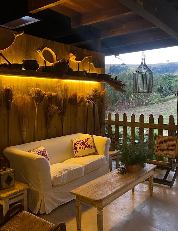 Casa de Pedra está a menos de 50 metros del lago más grande de la propiedad, lleno de peces y donde se puede nadar agradablemente. Fue diseñado por el famoso estudio de arquitectura Bernardes Jacobsen, responsable de obras importantes como el MAR - Museu de Arte Moderna do Rio, algunos hoteles Fasano y numerosas casas de alta gama en Brasil y en el extranjero. La casa tiene una hermosa vista de las montañas y la granja también tiene vistas al otro lado de la presa.