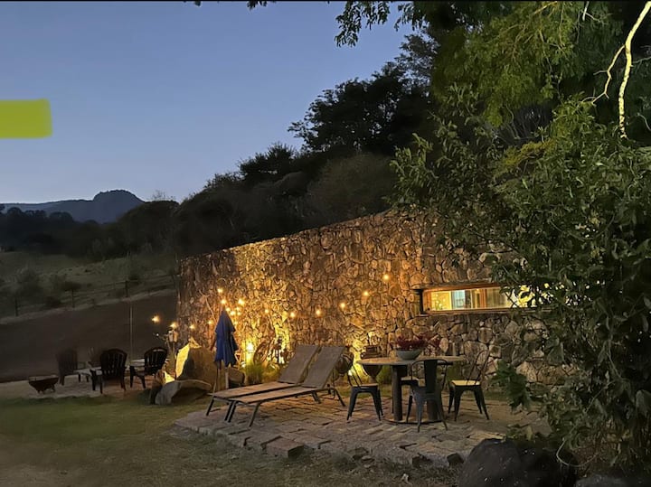 La casa de piedra de estilo contemporáneo se encuentra en una granja en el borde de una presa. Decoración encantadora, 2 suites, cocina abierta, chimenea ecológica, terraza con parrilla, mesa y sala de estar con sofá. Uno de los baños está acristalado, se abre a un pequeño jardín y tiene una bañera de hidromasaje de madera individual. Tenis de playa, tablas de paddleboard, 4 kayaks y 4 bicicletas. Muelle en la presa, playa en uno de los lagos, zona de hamacas, fogata, ducha, cascada, senderos, reforestación, mesas al aire libre. Wifi, TV inteligente y Alexa.
