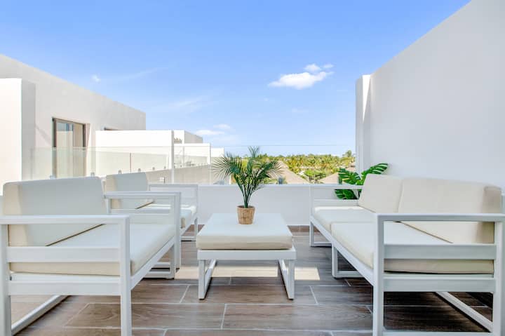 - Renta de alojamientos vacacionales con área de asientos al aire libre en Punta Cana