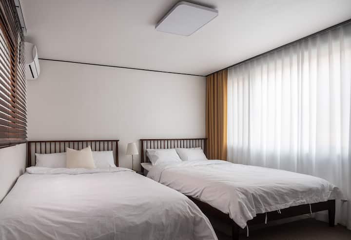 Haebangchon calle principal/Namsan Tower 5 minutos/40 pyeong casa unifamiliar/cocina espaciosa, mesa/camas 5 hoteladas/sala de estar espaciosa/almacenamiento de equipaje