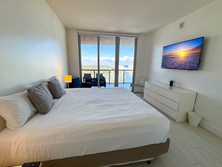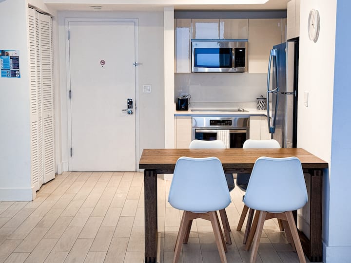 Nuestro lujoso apartamento de 2 habitaciones en Hallandale Beach está ubicado en uno de los mejores condohoteles de la zona, llamado BeachWalk. Este moderno apartamento cuenta con una habitación principal y una habitación adicional, ambas con baños privados, asegurando que tengas todo lo necesario para una estancia cómoda, ya sea para una escapada de fin de semana o una estancia más larga.