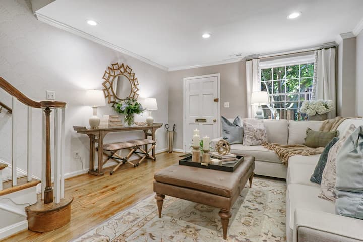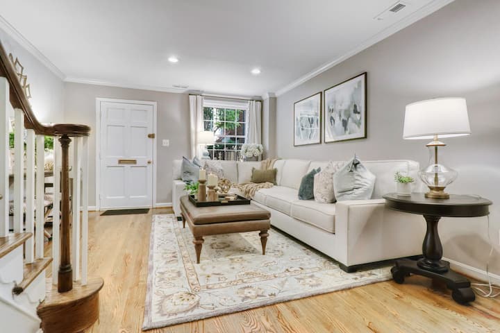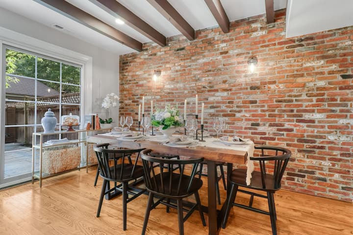 Escondido en lo que se siente como su propio mini pueblo, Bishop 's Terrace es cálido y acogedor con características arquitectónicas clásicas como vigas expuestas, una chimenea de ladrillo y suelos de madera. Los muebles nuevos y dos baños recientemente remodelados dan al espacio un toque moderno y comodidad.