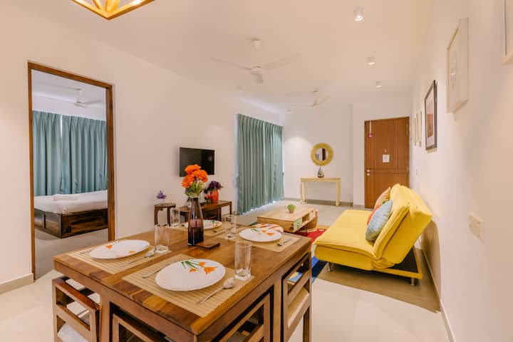 - Renta de alojamientos vacacionales con área de asientos al aire libre en Goa del Norte