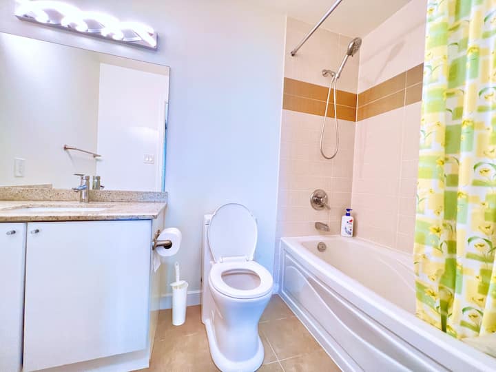 Dormitorio soleado con baño privado en el centro de la ciudad