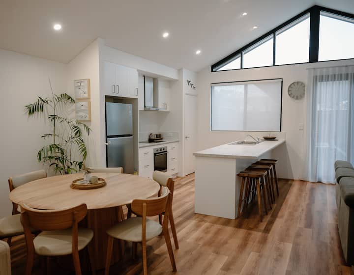 A poca distancia en auto (¡o a pie!) de algunas de las playas más idílicas para nadar y surfear del suroeste. Una increíble selección de cafés, restaurantes, bares, yoga, golf y tiendas a solo unos minutos en el relajado municipio costero de Dunsborough.
