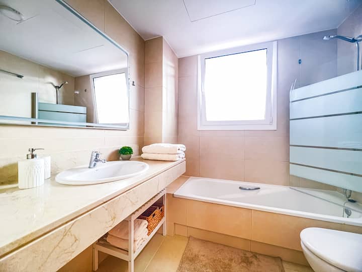 Fantástico apartamento con vistas al mar, ¡aire acondicionado! ¡Aparcamiento! ¡Terraza!