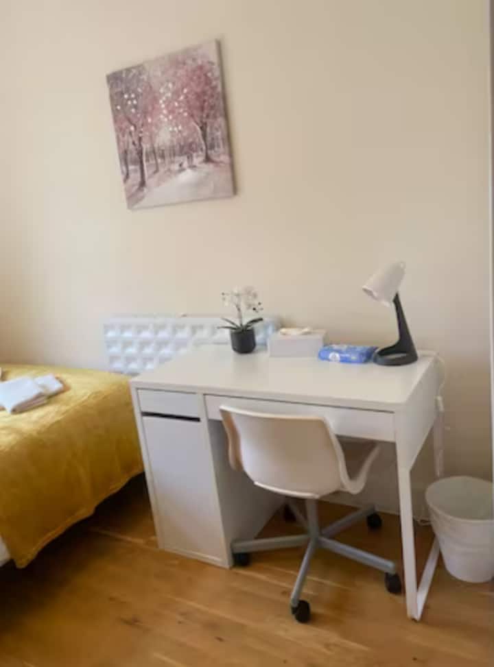 Una habitación con wifi apta para trabajar.
