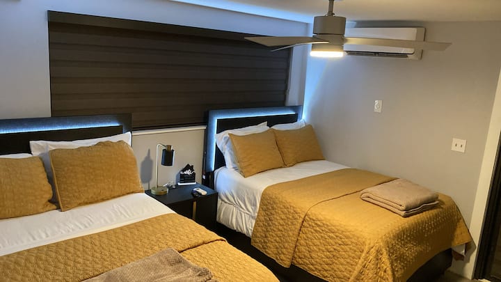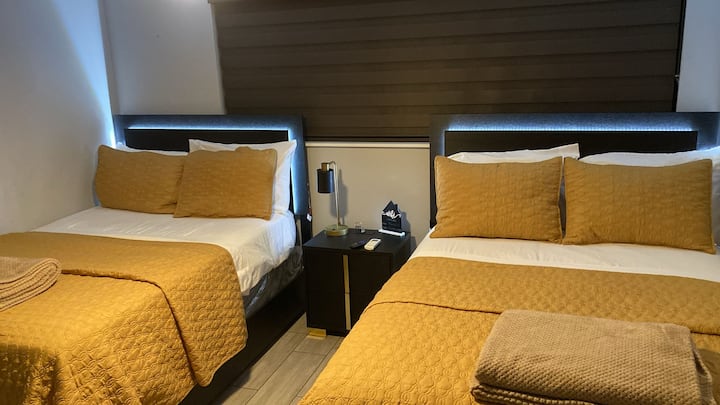 Esta encantadora y espaciosa habitación doble ofrece la mezcla ideal de comodidad y conveniencia, perfecta tanto para estancias cortas como para visitas corporativas prolongadas. Con su propia entrada privada y cerradura inteligente, disfrutarás de total independencia y privacidad durante tu estancia. La habitación cuenta con dos camas de tamaño completo, con capacidad para un máximo de 4 huéspedes cómodamente, por lo que es una excelente opción para familias, amigos o viajeros de negocios.
